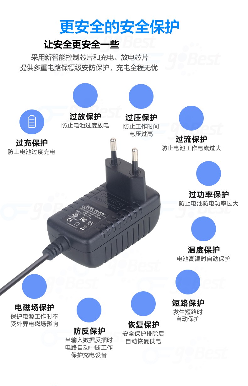 • 采用前沿IC控制方案和先進的制造工藝,高精度,低噪音;過壓,過流,過充,短路等多重保護。