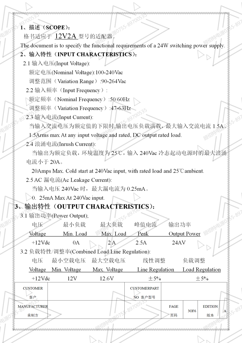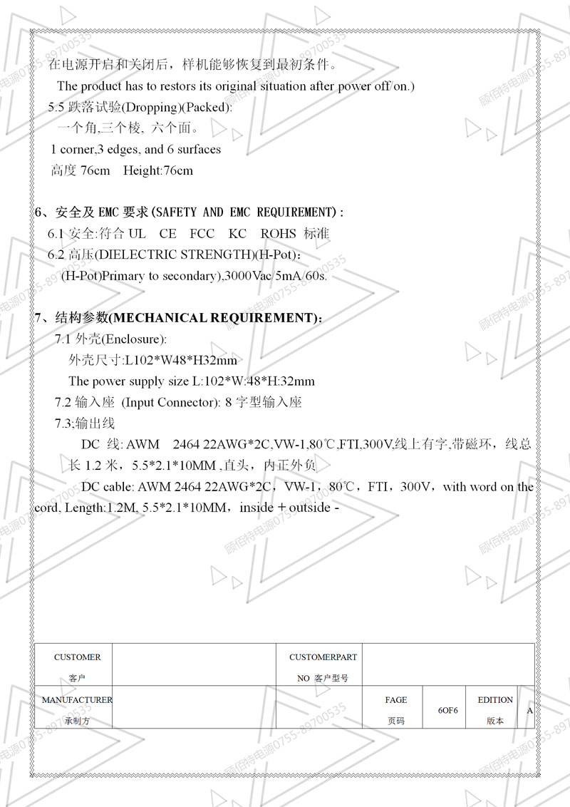24V6A電源適配器帶PFC電路規格書(新模具)