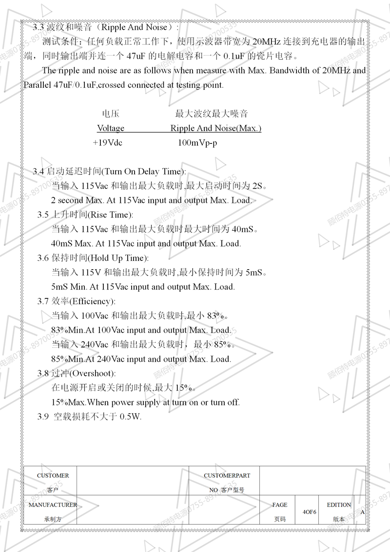 19V3.5A電源適配器規格書